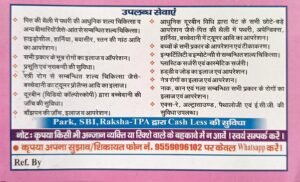 Park, SBI,Raksha-TPA द्वारा Cash Less की सुविधा